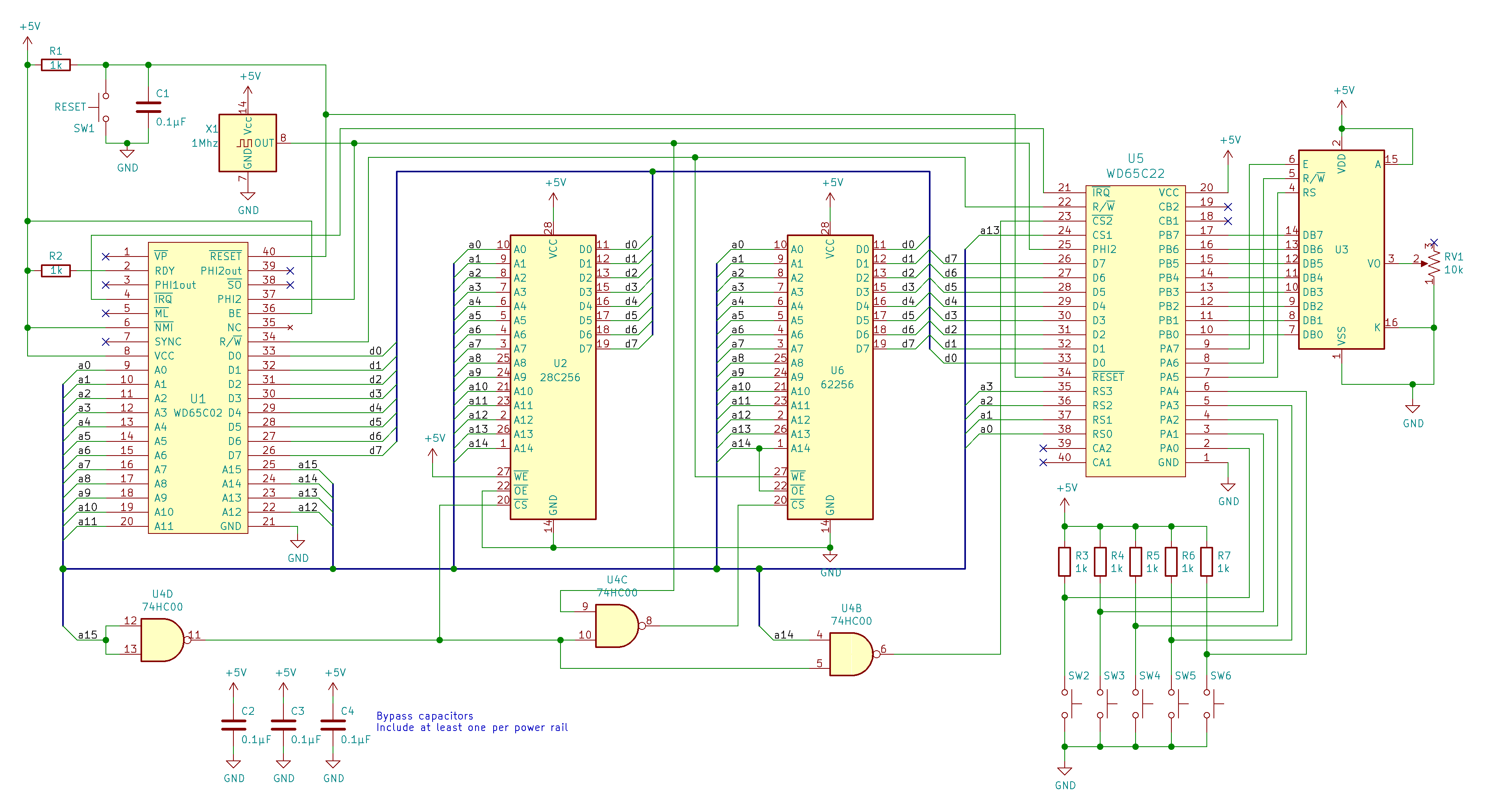That way we have RAM, a ROM, and a Versatile Interface Adaptor (VIA) to be able to perform I/O operations when all the data and address lines are already in use.