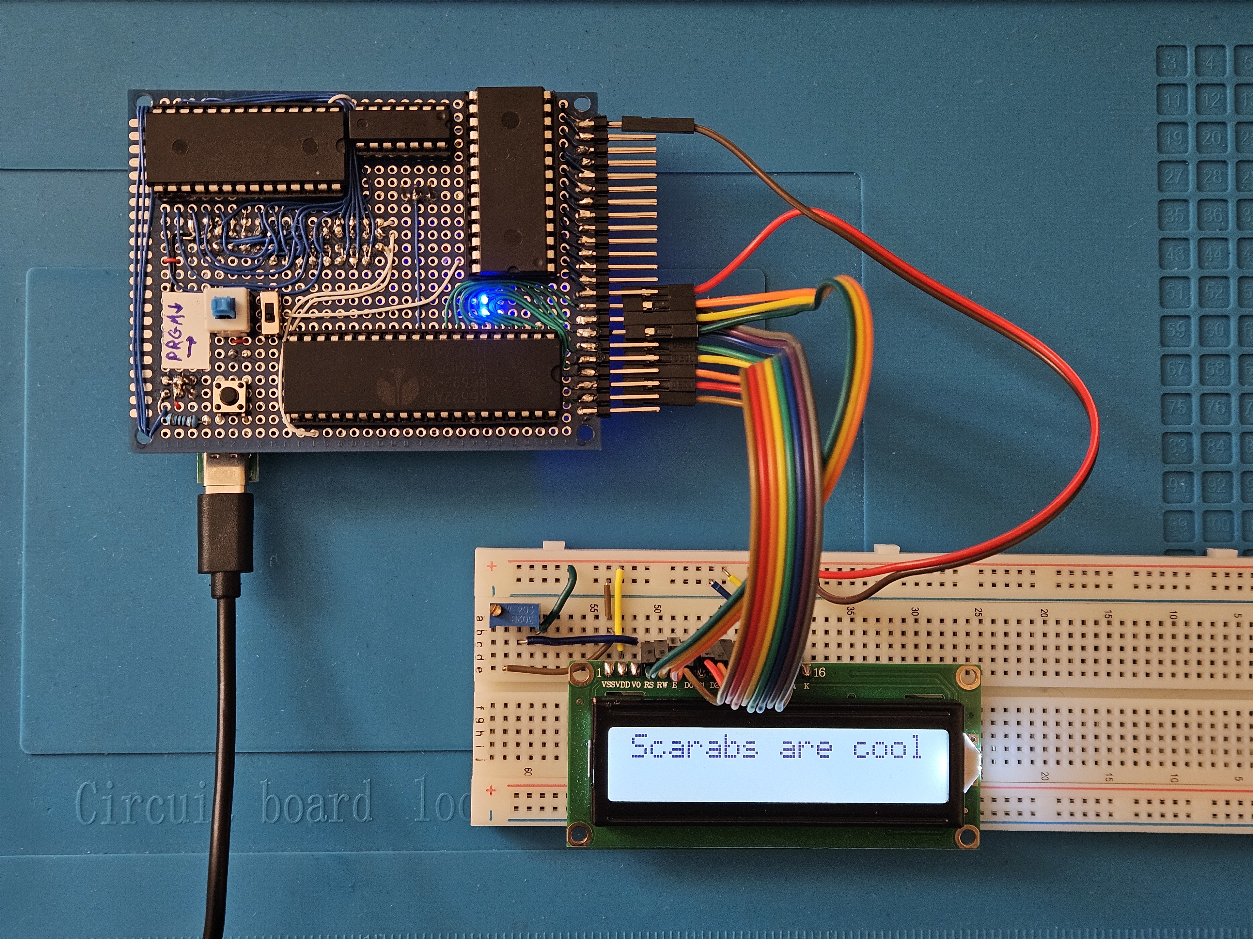 Here’s the board running a sample program that writes to an LCD!!